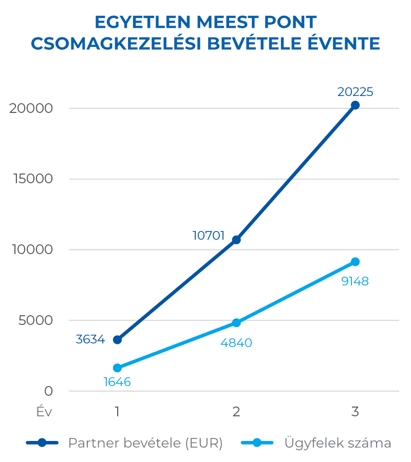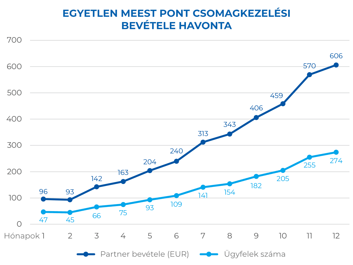 Partnereink jellemzően napi 5 és 50 csomagot kezelnek, a helyszín és a pont láthatósága függvényében.