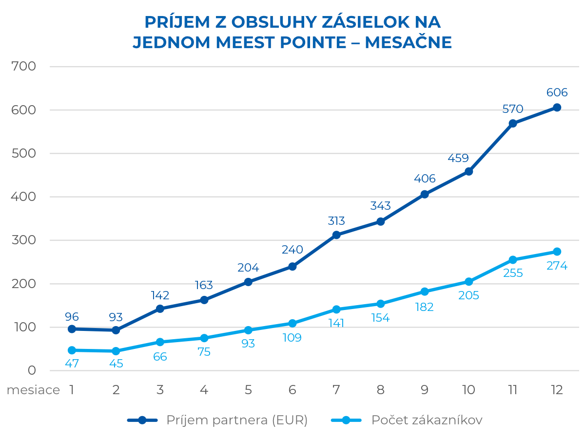 Partneri spravidla spracujú denne 5 až 50 balíkov, v závislosti od lokality a viditeľnosti miesta.